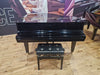 This Kawai GE-1 was built in 1988. At 155cm, it has a bright tone and a encompassing sound, overall giving it a broader sound than your traditional, mellow Kawai piano. It has well-weighted keys and a vibrant treble register. The polished ebony cabinet has been well maintained and gives a stunning first impression. This is a robust and economic choice for anyone looking for a good quality preowned grand piano.