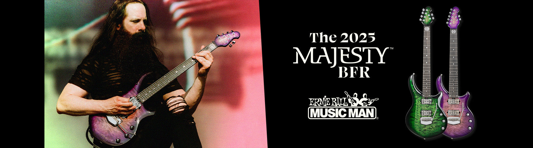 The 2025 John Petrucci Majesty Ball Family Reserve is available in two stunning finishes: Malachite, featuring a quilt maple top with alder wings, and Wolf’s Bane, with a maple burl top and black limba wings. Each guitar includes glow-in-the-dark side dots, DiMarzio Dream Catcher and Rainmaker humbuckers with chrome Majesty covers, ebony fretboard, 24 stainless steel frets, piezo-equipped tremolo bridge for acoustic tones, 20+ dB gain boost via push/push volume knob, coil splitting via push/push tone knob, mono and stereo outputs, floating tremolo, Schaller locking tuners, and a neck-through-body design with a super-thin, fast neck. Limited to 100 six-string and 50 seven-string units per finish, each guitar comes with a numbered certificate of authenticity, a Mono case, and a tremolo cover signed by John Petrucci.