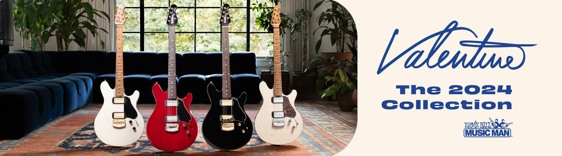 The Ernie Ball Music Man Valentine combines versatility and style, featuring an ash body with a wedge-shaped design for both weight relief and added comfort. A custom single-coil bridge pickup delivers clear, punchy highs, while a splittable neck humbucker offers a range of warm to edgy tones, complemented by an adjustable gain boost for extra power when needed. With a roasted figured maple neck, stainless steel frets, and new glow-in-the-dark side dots for visibility on any stage, the Valentine provides smooth playability and durability.