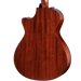"This cutaway version of our 300 Series 12-fret Grand Concert features all-mahogany construction, solid tonewoods and V-Class interior bracing for improved volume and sustain. The 322ce 12-Fret boasts a compact feel with strong tonal articulation that make it an ideal choice for fingerstyle arrangements and recording applications, while the 12-fret-to-neck setup offers a relaxed feel and more presence in the midrange. The result is a punchy, balanced voice with a focus on the fundamental note and minimal overtones, a sound that translates beautifully in amplified settings thanks to the built-in ES2 electronics. Appointments include a satin edgeburst finish, Gemstone fretboard inlays in Italian acrylic, and a stylish firestripe pickguard. "