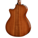 The 512ce is one of our first models to feature back and sides of solid red ironbark, a dense, hard tonewood that yields a rich, sophisticated response with a deep low end and high-fidelity voice reminiscent of Indian rosewood, along with some of mahogany's midrange punch and focus. The Grand Concert 512ce pairs red ironbark with a torrefied Sitka spruce top, lending a played-in character that makes for a warm, piano-like sound with remarkable balance across the tonal spectrum. With V-Class bracing inside, this compact acoustic-electric serves up room-filling projection and blooming sustain, offering a muscular quality that remains sensitive to a soft touch. Appointments include new Aerial inlays in Italian acrylic, a single-ring abalone rosette trimmed with maple and black purfling, and a tastefully subtle edgeburst. It ships with ES2 electronics in a deluxe hardshell guitar case.