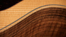 With its beautiful figuring, punchy acoustic voice and compact size, the Sunset Blvd GS Mini-e Figured Ovangkol adds a striking new flavor of sound and style. Crafted with back and sides of layered figured ovangkol and a solid top of torrefied spruce, this model yields a potent midrange character with surprising heft and power for its scaled-down frame, with a touch of aged-in warmth and sweetness thanks to our proprietary roasting process for the soundboard. Players will appreciate the accommodating frame and slender neck profile, which features a slightly narrower nut width of 1-11/16 inches for an even smoother fretting feel. Visual appointments include our 50th Anniversary diamond fretboard inlays in Italian acrylic, a white three-ring rosette, gold hardware and a natural matte finish. It ships with ES-B electronics featuring a built-in digital tuner and a sturdy gig bag for transportation.