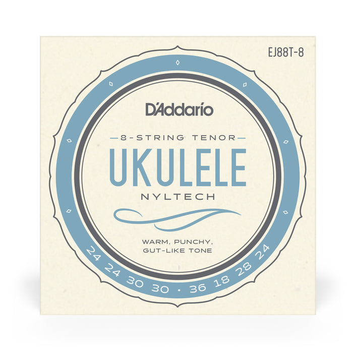 D'Addario EJ88T sets are designed for use with 8-String tenor ukuleles utilizing our exclusive Nyltech material. This set is optimized for standard 8-String GCEA tuning.