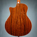 The sonic power and depth of Taylor’s Grand Symphony body shape, especially in the lower mids, add girth and sustain to the overall voice. The cutaway ovangkol/spruce 416ce makes a bold strummer, yielding meaty midrange and strong treble notes, and its responsiveness to a light touch gives players a dynamic range to explore. Clean, modern appointments include crisp white binding, Italian acrylic dot fretboard inlays, and a three-ring rosette, with Taylor’s onboard Expression System® 2 acoustic electronics responding with a clear, natural amplified sound for performing or recording.